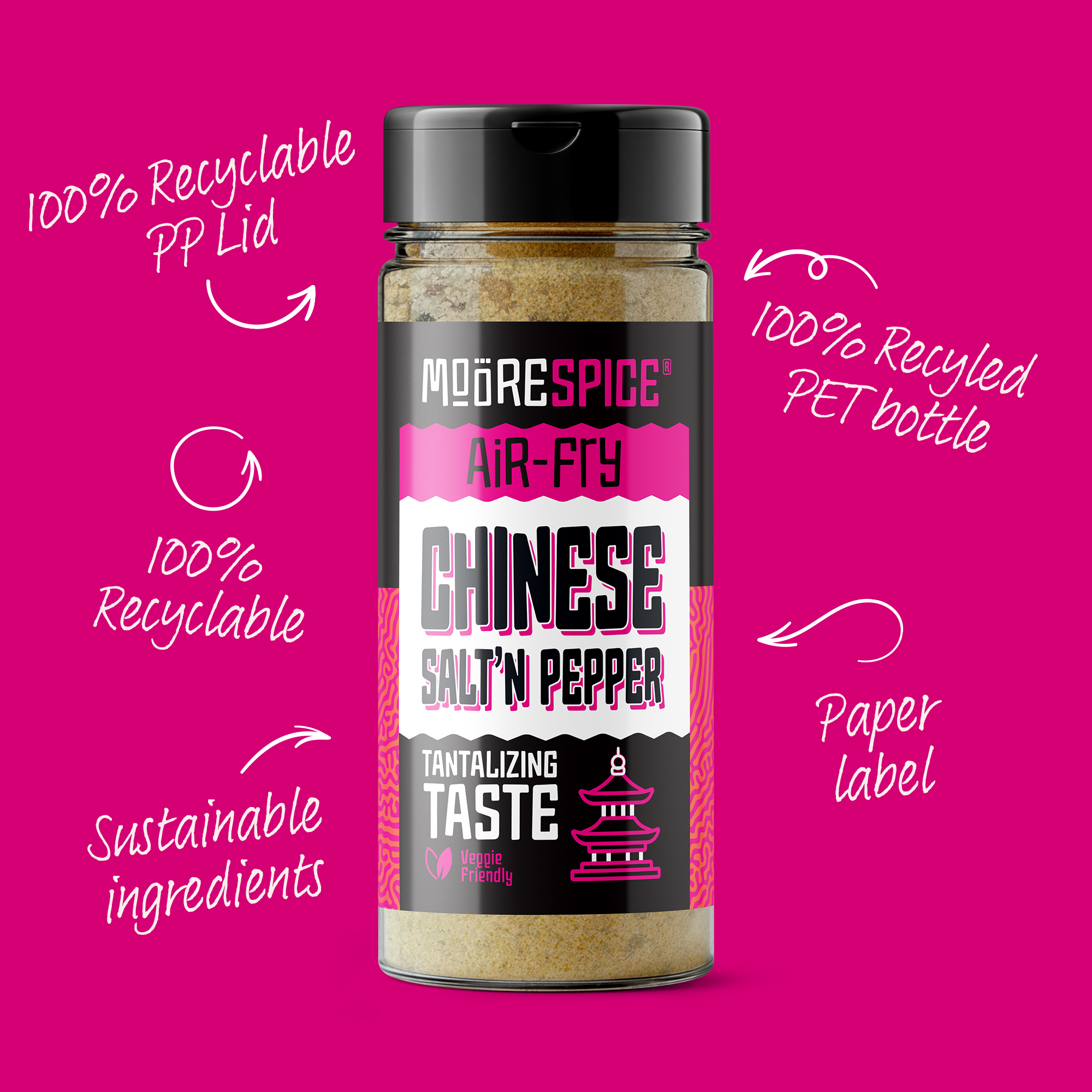 We are totally committed to protecting and respecting the planet. Our plastic bottles are made from 100% recycled PET and are also fully recyclable, making them as environmentally friendly as is possible. The bottle caps are also made from fully recyclable PP and the labels are paper, also 100% recyclable.